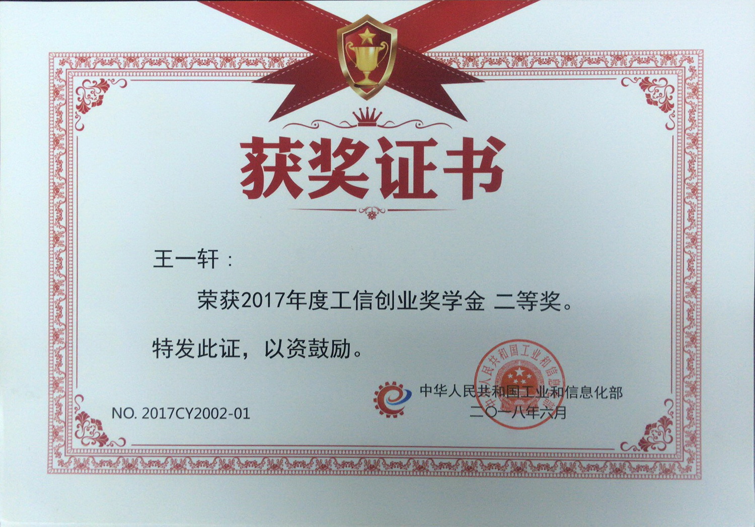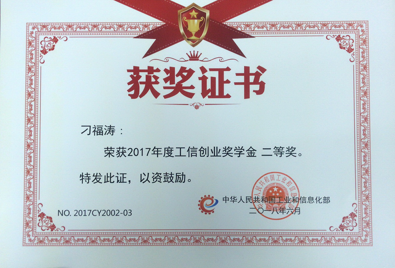 工業(yè)和信息化部日前公布2017年度中國(guó)高校創(chuàng)新創(chuàng)業(yè)獎(jiǎng)學(xué)金評(píng)審結(jié)果,根據(jù)《工信創(chuàng)新創(chuàng)業(yè)獎(jiǎng)學(xué)金管理辦法(試行)》(工信廳人〔2016〕173號(hào)),經(jīng)部獎(jiǎng)學(xué)金評(píng)審工作領(lǐng)導(dǎo)小組審定,我公司與北京航空航天大學(xué)聯(lián)合開(kāi)發(fā)的《工業(yè)視覺(jué)檢測(cè)及生產(chǎn)追溯系統(tǒng)》項(xiàng)目,榮獲全國(guó)高校創(chuàng)業(yè)類二等獎(jiǎng),我公司兩名員工獲得了獎(jiǎng)狀及證書(shū)。