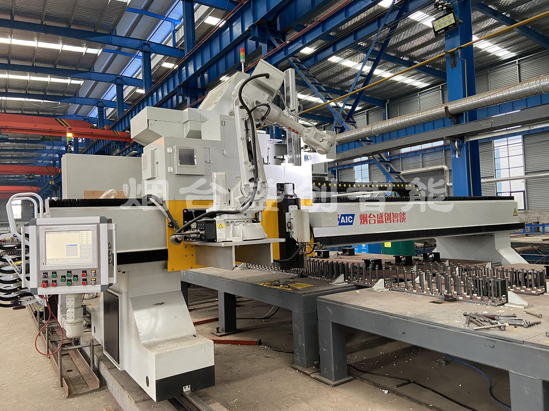 我公司自主研發(fā)的剪力釘(帶瓷環(huán))自動焊接機器人設(shè)備,采用數(shù)控龍門、工業(yè)機器人、工業(yè)視覺等技術(shù),可完全取代人工,實現(xiàn)鋼板自動除銹、焊點自動定位、剪力釘和瓷環(huán)自動上料、自動配合、自動焊接的全自動作業(yè)流程。設(shè)備可用于平板、弧形板、異形板的自動焊接。