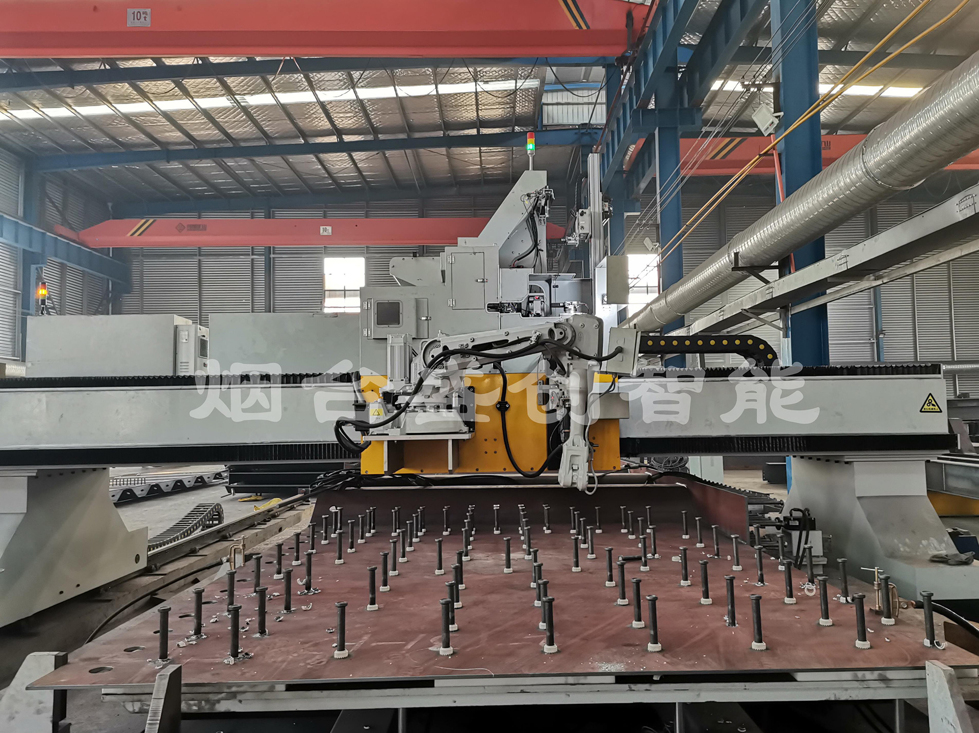 設(shè)備專用控制軟件,可直接導入CAD 2D圖或3D圖即可進行焊接,可離線編程,可進行機器人運動軌跡模擬,可智能識別鋼板變形表面并智能糾偏。